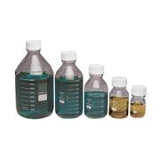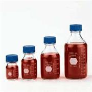 Graduated to ± 5% accuracy and autoclavable at 121°C Ideal for storing and sterilizing fluids and dry chemicals Supplied with a 45 mm white polypropylene cap Wide mouth eliminates fluid surges while pouring Made of borosilicate glass