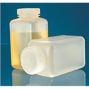 Narrow mouth, high-density polyethylene Nalge 2018 series Economical, most chemical and break resistant of all Nalge square bottles High-density polyethylene bottles have polypropylene screw cap and leakproof closure Usable from -100° to 120°C (-148° to 248°F); not autoclavable